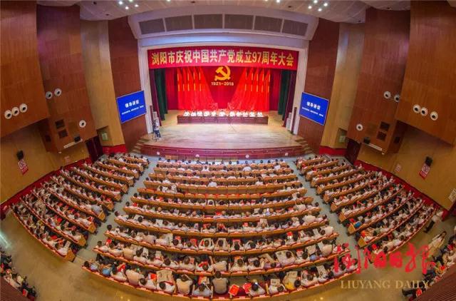 “这是最后的斗争,团结起来到明天,英特纳雄耐尔就一定要实现!”随着1000余名党员在欧阳予倩大剧院发出了雄壮歌声,浏阳市庆祝中国共产党成立97周年大会顺利闭幕。近日以来,浏阳市各级党组织和广大党员干部组织了丰富多彩的活动,表彰先进典型、走访慰问老党员、进行党员教育、开展志愿服务,营造“红色”氛围,为党的华诞献礼。