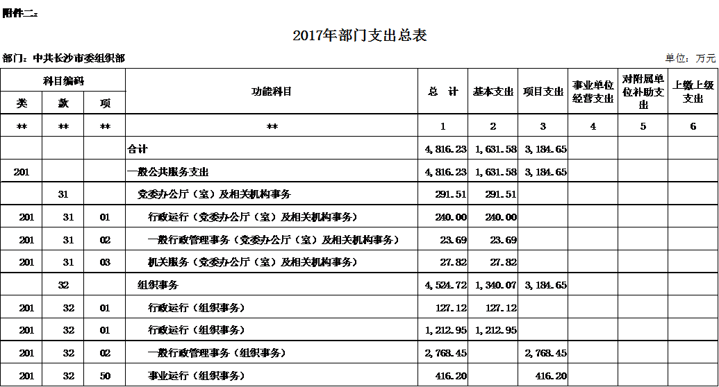 中共长沙市委组织部2017年部门预算说明